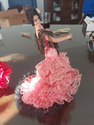 Preciosa muñeca con un elaborado vestido rosa hecho a mano. - Vestido de crochet con volantes. - Adorno de encaje blanco en el vestido. - Incluye sombrero a juego. No tiene pelo pero se lo tapa el sombrero lo que se vende es el vestido la muñeca va de regalo