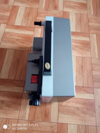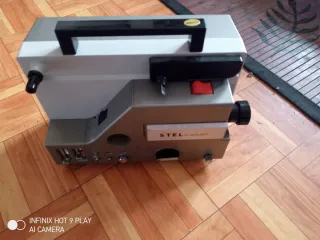 Máquina de cine antigua de la marca STEL. Se encuentra en buen estado. - Color gris y blanco.