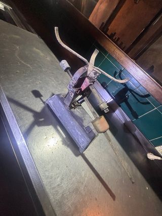Pesa romana antigua de metal, con un diseño clásico y robusto. Ideal para coleccionistas o como elemento decorativo. - Estructura de metal. - Diseño de cuatro brazos curvos.