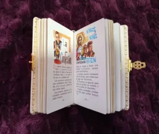 Misal antiguo con una cubierta nacarada y un detalle de cruz dorada. Hojas cubiertas de pan de oro. Incluye su estuche protector de plástico transparente. - Años 50-60. - Cubierta con diseño nacarado. - Cruz dorada en relieve. - Estuche de plástico incluido. Para más artículos visitar mi perfil. #Iglesia #Catequesis #Religión #Libros #Sagrado #Jesucristo #Virgen #Catolica