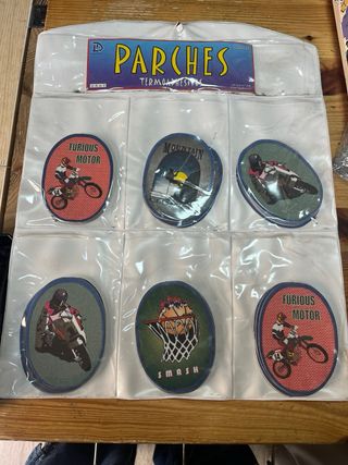 Lote de parches termoadhesivos antiguos. - Diseños variados. - Ideales para personalizar ropa o accesorios.