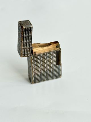 Encendedor S.T. Dupont Ligne 1 vintage, que combina elegancia y savoir-faire francés. Cuerpo en latón chapado en plata, mecanismo y detalles chapados en oro, con motivo guilloché “punta de diamante”, muy apreciado por coleccionistas. • Marca: S.T. Dupont París • Modelo: Ligne 1 – Pequeño • Materiales: Cuerpo chapado en plata, mecanismo y tapa chapados en oro • Decoración: Guilloché punta de diamante / grano de cebada • Estado: Buen estado general, pequeñas marcas normales por el uso y la antigüedad El mecanismo funciona perfectamente; solo necesita una recarga de gas.