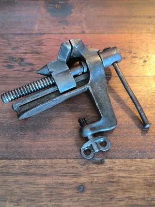 Muy antiguo tornillo de banco de finales del S. XIX o principios del XX. Posee un precioso tas o yunque para trabajos de precisión, seguramente para trabajos de joyería o relojería. Aunque perfectamente funcional, su valor recae en su antigüedad y singularidad. Ideal para colecciónistas o para trabajos finos de artesanía. Detalles, medidas y peso en las fotografías.