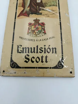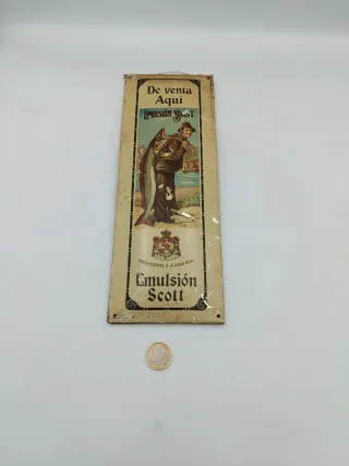 Antigua chapa esmaltada de Emulsión Scott, un artículo de colección. - Diseño vintage con ilustración. - Texto De venta aquí y Emulsión Scott. Proveedores á la casa Real. Tiene desgaste por el paso del tiempo. Medidas: 29,5 x 10,5 cms (alto x ancho) Ref: SM Puedes verlo y recogerlo presencialmente en el Polígono de Raos, Santander. Tlf: 635153338. Abrimos las mañanas de Lunes a Sábado de 10 a 14h y las tardes de Lunes a Viernes de 17 a 20h.