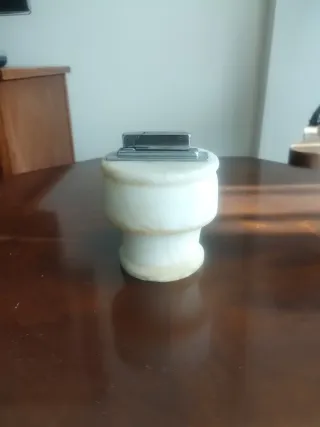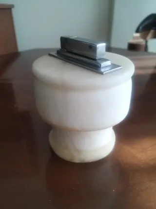 Encendedor vintage con base de alabastro, datado de los años 70. - Base de alabastro. - Diseño clásico.