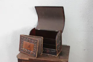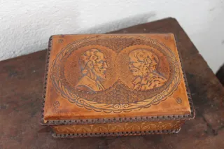 Caja de cuero repujado con retratos