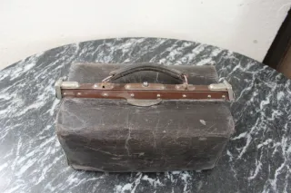 Maletín de médico antiguo, con un diseño clásico y robusto. - Material: Cuero. - Color: Marrón oscuro. - Cierre metálico.