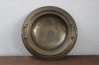 Brasero antiguo de latón con un diseño clásico y dos asas decorativas. - Material metálico - Color: Dorado - Con asas laterales