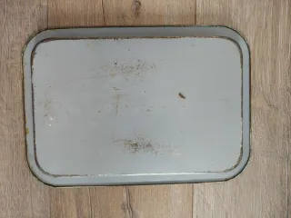 Bandeja antigua con un diseño detallado de una escena invernal. - Borde verde con detalles dorados. - Ilustración de personas en un entorno nevado. - Ideal como pieza decorativa.
