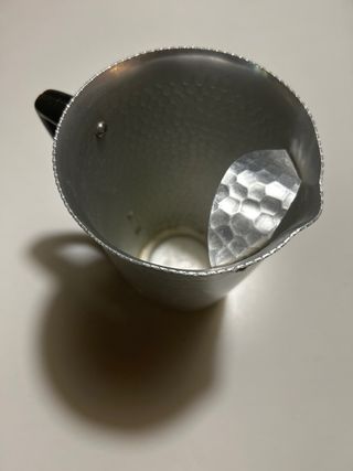 Antiguo aumador de metal, con un diseño rústico y un asa lateral. Incluye una cuerda para colgarlo. - Material: Metal - Color: Oxidado - Incluye asa y cuerda