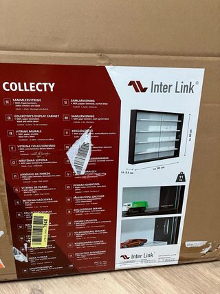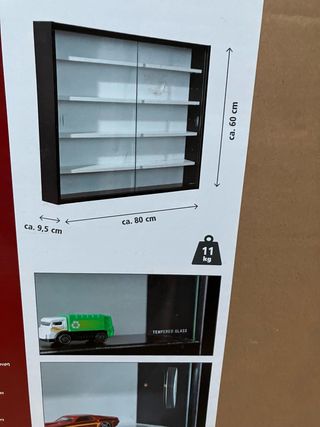 Vitrina expositora con puertas correderas de cristal, ideal para colecciones. - Medidas: 80 cm de ancho x 60 cm de alto x 9,5 cm de profundidad. - Material: Cristal templado. - Peso: 11 kg.