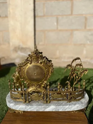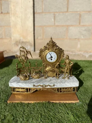 PRECIOSO RELOJ DE BRONCE Y MÁRMOL DE SOBREMESA ANTIGUO TIPO CHIMENEA, CON MECANISMO MECÁNICO Y ESFERA CON NÚMEROS ROMANOS. CONJUNTO DECORATIVO CON ELABORADA ORNAMENTACIÓN CLÁSICA Y FIGURAS EN METAL DORADO, MONTADO SOBRE BASE DE MÁRMOL BLANCO. PIEZA DE GRAN PRESENCIA DECORATIVA, IDEAL PARA COLECCIÓN, DECORACIÓN CLÁSICA O AMANTES DE LAS ANTIGÜEDADES. ANTIGÜEDADES ORO BRONCE PLATA MARFIL VAJILLA MUSEO MUEBLE VINTAGE RETRO CLÁSICO COLECCIÓN IKEA LEROY MERLÍN DECORACIÓN ESTILO BARROCO ROCOCO LATON ARTE ILUMINACIÓN RELIEVE PIEZAS FORJADO FUNDICIÓN HISTORIA PATRIMONIO PALACIO INTERIORISMO JOYAS ARTESANÍA FIGURA APARADOR CONSOLA