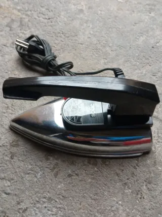 Planchas antiguas de colección con un diseño clásico y elegante. Su acabado cromado le da un toque retro. Son dos : una un poco más grande y una pequeña. 20€ las dos - Cuerpo metálico brillante. - Mango de plástico negro.