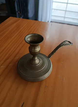 Palmatoria porta vela antigua de latón.