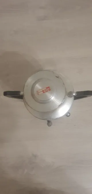 Vendo jarra antigua de color dorado con un diseño texturizado en la parte inferior, por 7€. Cuenta con un asa de plástico negro.