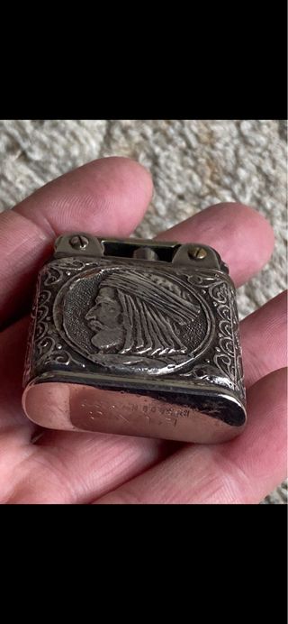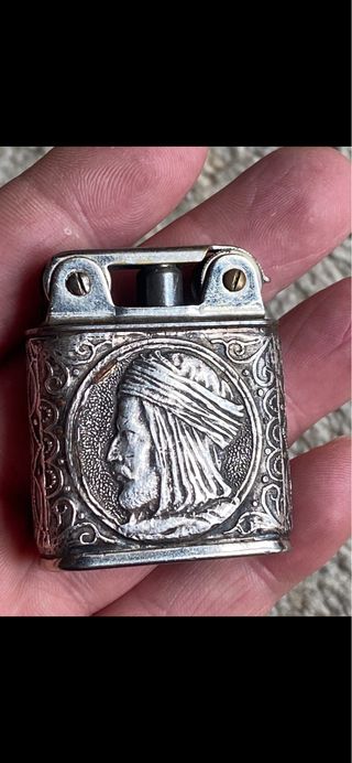 LEER BIEN, ESCUCHO OFERTAS. Mechero antiguo con un diseño detallado en relieve. - Fabricado en plata. - Presenta un perfil de cabeza con turbante.