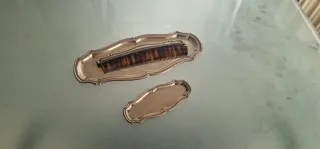 Conjunto de tocador de alpaca con un diseño elegante. - Bandeja principal con peine. - Bandeja secundaria. - Material: Alpaca.