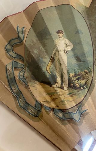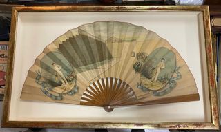 Abanico pintado a mano pelotaris fechsdo 1885 enmarcado . 82x49x5 cm