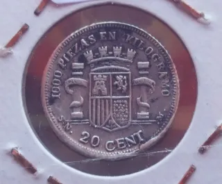 Antigua moneda de Alfonso XIII con valor de 20 centavos. Isla de Puerto Rico. Año: 1895. Precio en catálogo más de 300€ "ESCUCHO OFERTA RAZONABLE" *** ACEPTO CAMBIOS **"