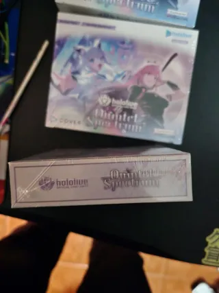 Se venden paquetes de cartas Hololive Quintet Spectrum. En su momento compre unos cuantos paquetes para que me saliera la Oshi de Fubuki, una vez conseguida no vi necesidad de abrir mas 😅 Completamente Nuevos sellados todos precintados - Cada paquete contiene 12 sobres. - Producto oficial de Hololive. Precio por caja 60€ Precio por las 4 cajas 220