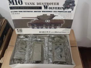 Maqueta a escala 1/35 del M10 Tank Destroyer Wolverine de producción tardía. - Torreta rediseñada con contrapesos. - Torreta abierta con interior detallado. - Retroceso del cañón como el original. - Brazos de suspensión funcionales. - Orugas tipo T-49. - Cañón de aluminio. - Parte superior blindada.