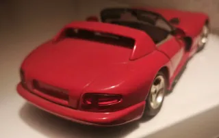 Réplica del icónico Dodge Viper RT/10 en color rojo. - Diseño deportivo convertible. - Detalles realistas. - Escala 1:24 burago - Se montó y se coloco en vitrina,nunca usado