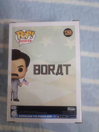 Figura Funko Pop de Borat, número 1269 de la línea Movies. Esta edición es exclusiva de la Convención de Otoño de 2022 y es una edición limitada. - Figura de vinilo. - Incluye un pequeño bolso y una bandera de Estados Unidos.