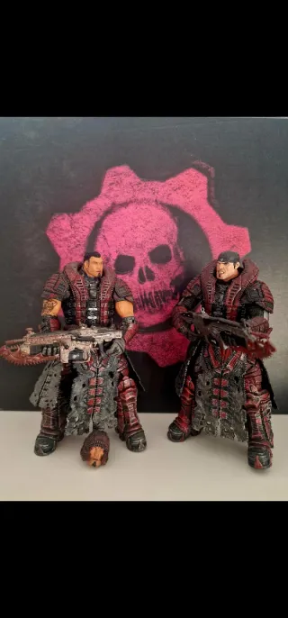Figura de acción de Gears of War 2. 🔥 - Diseño detallado inspirado en el videojuego.✅️ - Expuestas siempre en vitrina.✅️ - Incluye accesorios de arma.✅️ - Incluye el duo de la mítica saga Gears of War 2, Marcus y Dom.✅️ - Incluye de regalo una carta pokemon original con su funda protectora. 🎁