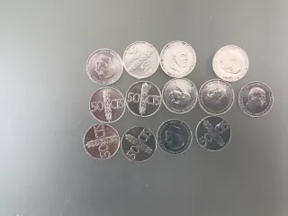 Conjunto de trece monedas antiguas, ideales para coleccionistas o para arras de boda 💒 - Trece monedas de Franco de 50 céntimos del año 1966 - Van en su saquito de regalo 🎁
