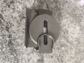Carrete de pesca antiguo, con un diseño clásico y robusto. - Cuerpo metálico. - Manivela con empuñadura negra. - Bobina plateada.