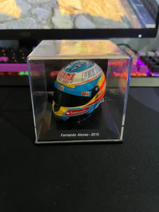Casco de Fernando Alonso de la temporada 2010. - Escala 1/5. - Diseño detallado del casco. - Incluye peana expositora. Precio No negociable. Pago por bizum.