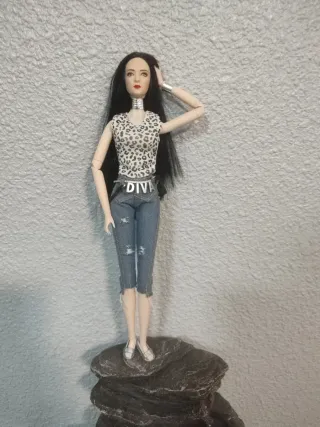 Muñeca con un diseño similar al de Barbie, lista para añadir a tu colección, regalo 🎁 conjunto de joyería con está compra 🛍️. -outfit con estampado de leopardo. - Incluye collar plateado. - Brazalete plateado, zapatos, vaqueros realistas y cinturón de DIVA.