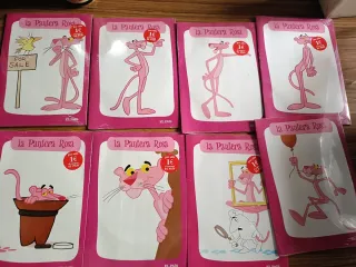 Colección de 8 dvd de La Pantera Rosa, cada uno con una ilustración diferente y el precio de 1€. - Incluye 8 números. - Cada dvd tiene un diseño único. - Precio original de 1€ por unidad.