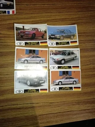 Conjunto de cromos de coches Opel. Opel vectra - Opel Kadett GSI 16V - Opel Calibra - Opel Omega.
