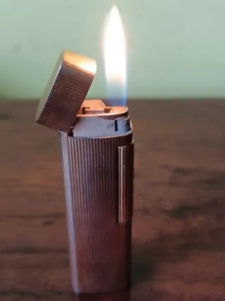 Encendedor de la marca Ronson con un diseño clásico y elegante. Su cuerpo metálico presenta un acabado acanalado que le da un toque distintivo. - Cuerpo metálico. - Diseño acanalado.