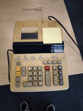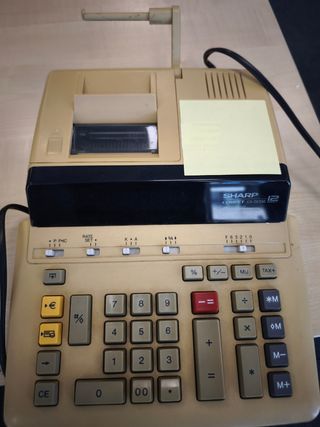 Calculadora retro Sharp COMPET CS-2635E. - Diseño clásico en color beige. - Teclado numérico completo. - Funciones de memoria y tax.