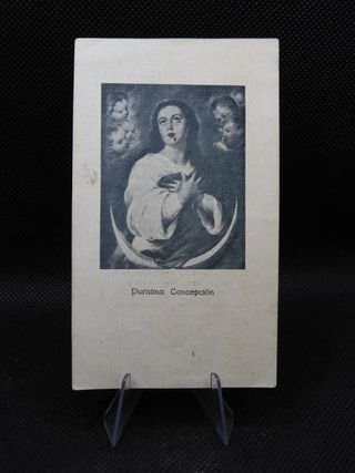 Antigua estampa religiosa de la Purísima Concepción. - Representación artística de la Inmaculada. - Texto en español: Purísima Concepción. - Incluye "himno a la parroquia" en el reverso - Tamaño: 10.5x6 cm 💬 Se pueden combinar pedidos. No se aceptan devoluciones. Contáctame para más información. ¡Estoy encantado de ayudarte!