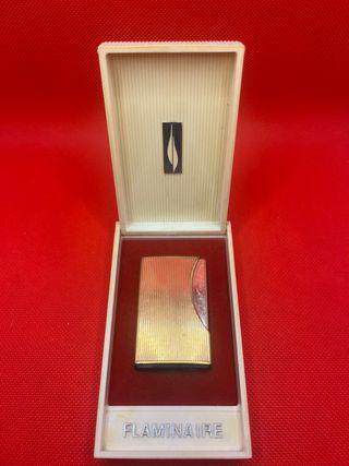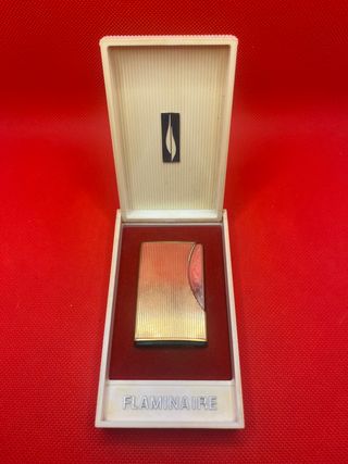 Encendedor Flaminaire 20 de color dorado, presentado en su caja original. - Diseño clásico y elegante. - Acabado metálico brillante. 💬 Se pueden combinar pedidos. No se aceptan devoluciones. Contáctame para más información. ¡Estoy encantado de ayudarte!