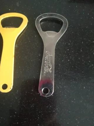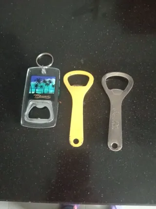 Conjunto de abridores de botellas, ideal para coleccionistas o para uso diario. - Abrebotellas con diseño de Coca Cola. - Abrebotellas con diseño de Hawaii. - Un abrebotellas adicional.,el de Coca cola es muy antiguo y el amarillo tb,y el de Hawaii es de los 90,precio por unidad 6 ,todos 15 euros