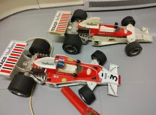 Lote de dos coches Superbolido Rico . Ideales para coleccionistas o para restaurar.Uno prácticamente completo a excepción del mando y el otro para esas piezas difíciles como trompetas , motor , alerón chapa... - Superbolido Rico + otro para pieza