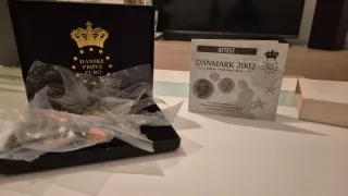 Conjunto de 9 monedas de prueba de Dinamarca del año 2002. - Incluye estuche original. - Certificado de autenticidad ATTEST.