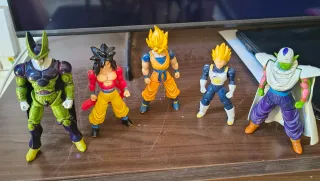 Colección de 5 figuras de Dragon Ball. - Incluye a Cell, Goku SSJ4, Goku SSJ, Vegeta y Piccolo. - El dragón de Goku SSJ4 tiene una pieza faltante.