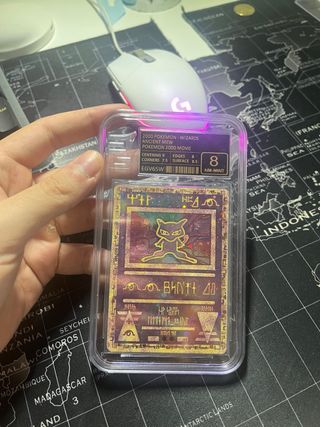 Carta Pokémon Ancient Mew, edición especial de la película Pokémon 2000. - Grado: 8 NM-MINT - Centrado: 9 - Bordes: 8 - Esquinas: 7.5 - Superficie: 8.5 - Código de autenticidad: EGV65W