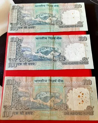 Moneda de la India de 100 rupias. DEL AÑO APROXIMADAMENTE 1980 - Billete de 100 rupias de la India. - Muestra signos de uso. De 100 50 y 10 rupias 2 EUROS CADA BILLETE IDEAL PARA COLECCIONISTAS TIENEN MARCAS DE GRAPAS MUY HABITUALES EN ESTOS BILLETES