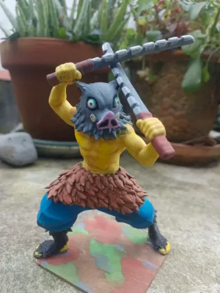 Figura de resina pintada a mano, con una altura de 15cm. Representa a Inosuke Hashibira del anime. - Material: Resina. - Altura: 15 cm. - Pintura detallada.