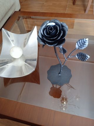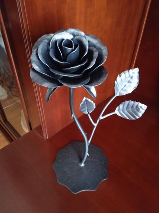 Rosa forjada, hecha a mano de forma totalmente artesanal con un diseño en color plateado 20x14x34cm, (ancho, fondo, alto). Medida de la rosa: 12cm Más artículos de artesanía en mi perfil.