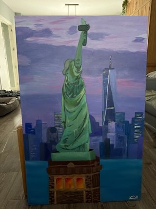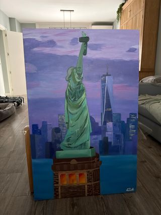 Pintura original de la Estatua de la Libertad y el skyline de Nueva York. - Hecho a mano por el vendedor. - Representación artística de NYC. se acepta ofertas de precio