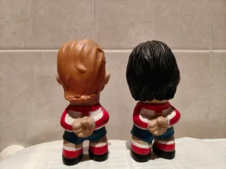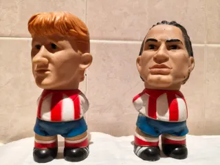 Dos muñecos coleccionables del Atlético de Madrid. - Diseño vintage. - Ropa del equipo.