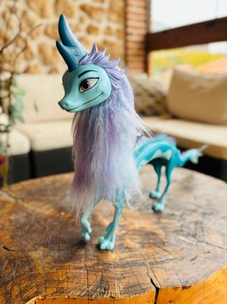 Figura del personaje Sisu de la película Raya y el Último Dragón. Articulada, 70 cm, le falta un poco de pintura en la pata como se puede ver en la foto. - Diseño inspirado en el personaje. - Colores vibrantes y detalles. - Melena y cola con acabado brillante.
