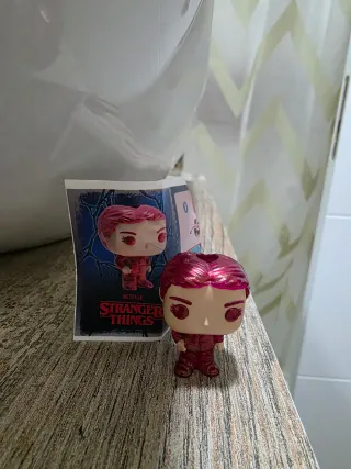 Colección de figuras Funko Pop! de Stranger Things, provenientes de Kinder Joy. Cada figura representa un personaje icónico de la serie. - Figuras coleccionables. - Personajes de Stranger Things. - Edición especial Kinder Joy. Solo me queda Will por conseguir Los cambio todos por Will Cambio Will del mundo al revés por Will normal. Los tachados en rojo son los q tengo y con raya verde los repes